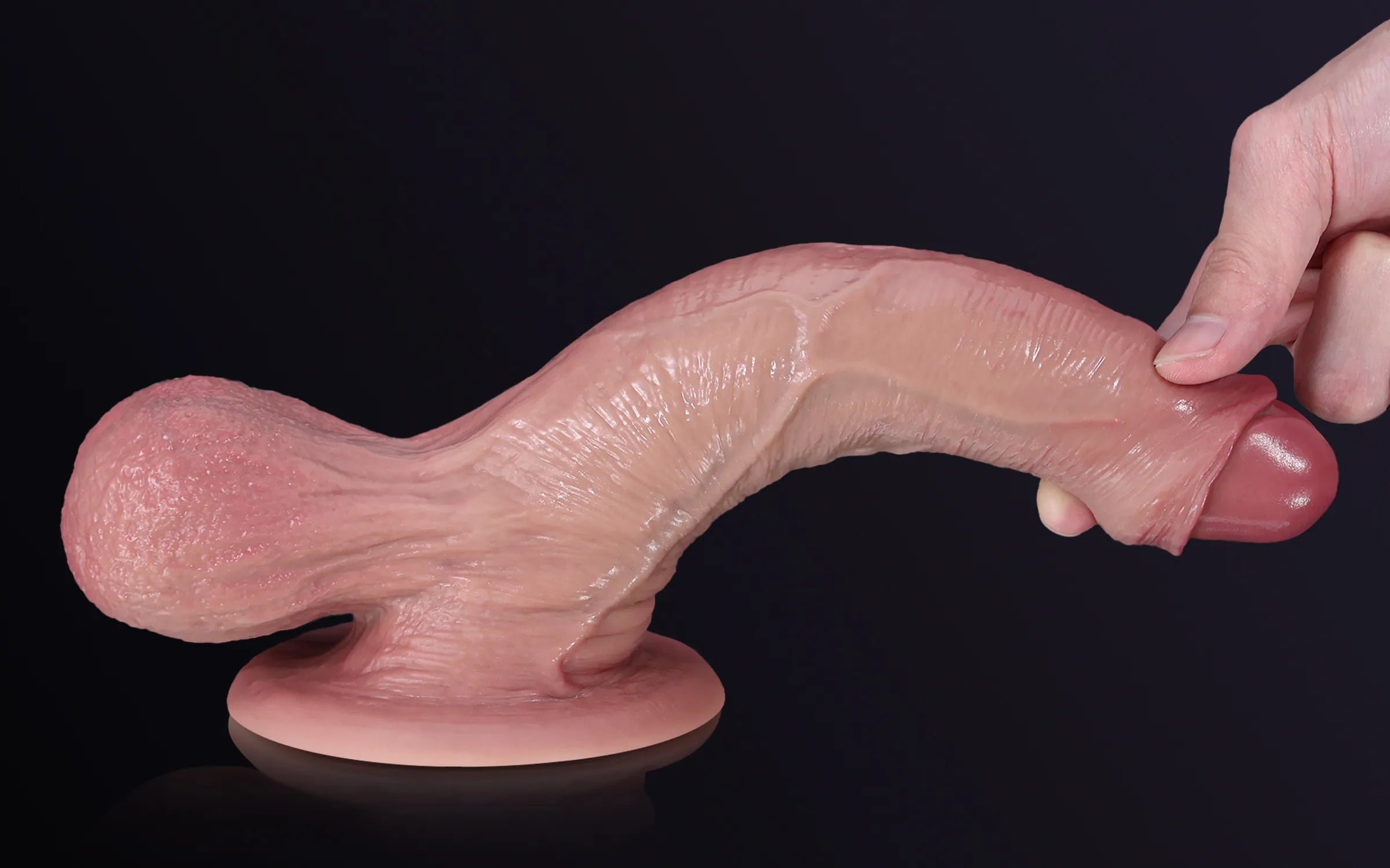 Gland sculpté, naturellement enflé, avec une finition douce et légèrement rosée pour un réalisme anatomique parfait.